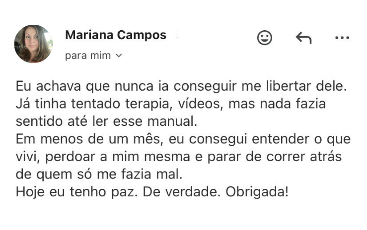 Libertação emocional real — você vai parar de reviver o passado e conseguir colocar um ponto final no ciclo da dor.